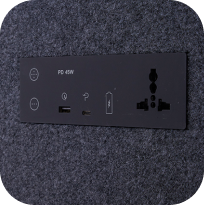 CE certified charging ports with AC outlet and type A / type C 65W PD. Input 110-240 VAC, 10A, 50-60Hz.