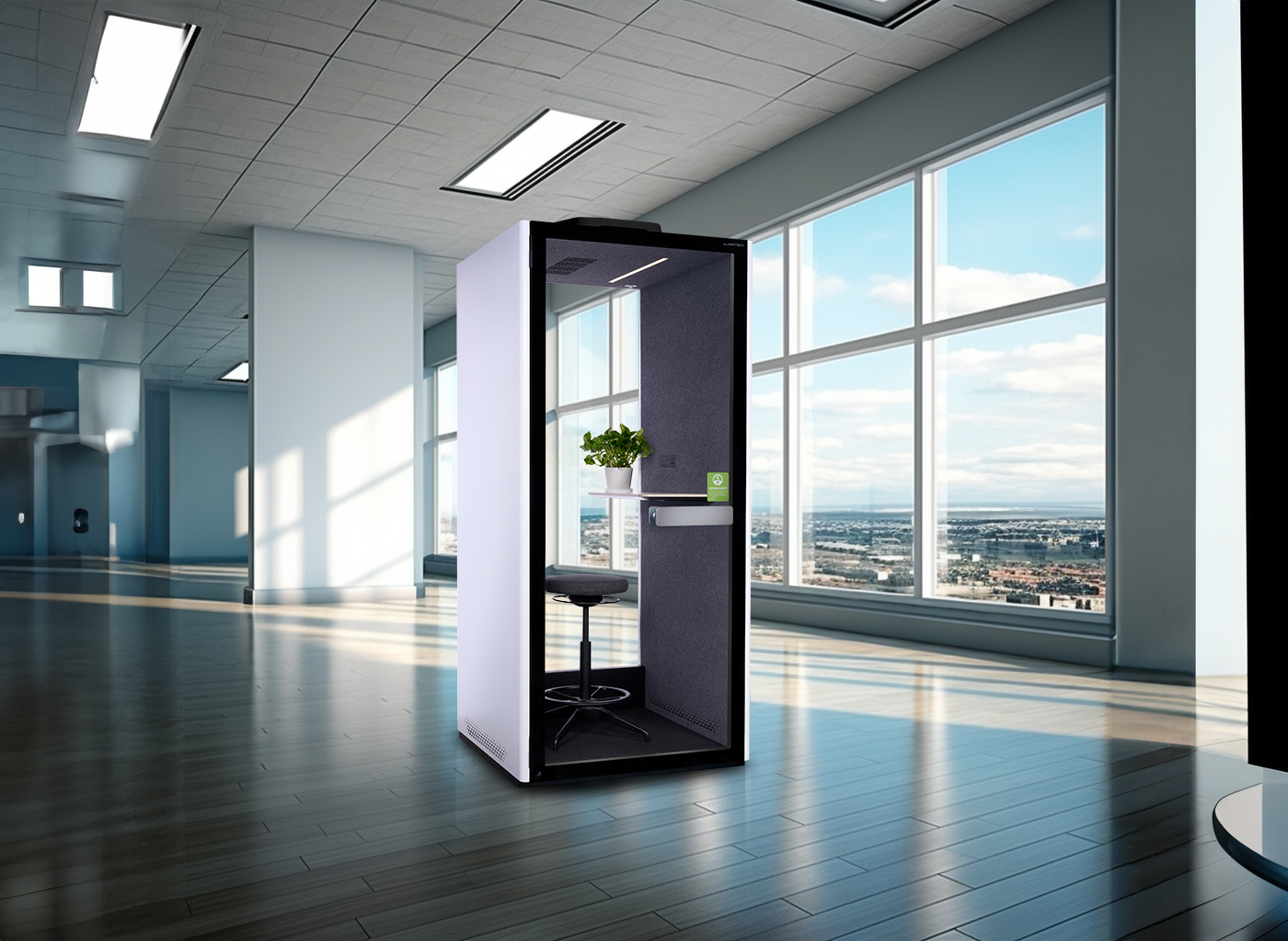 The pod is well ventilated with filtered air to provide a comfortable and clean workspace to the user.